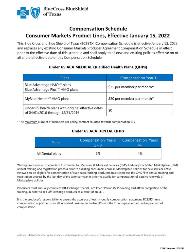Please be advised that the following commission schedules are for illustrative purposes only. All rates are subject to change at the discretion of the insurance carriers. For binding terms and conditions, you must refer to your official producer agreement with the respective carrier.